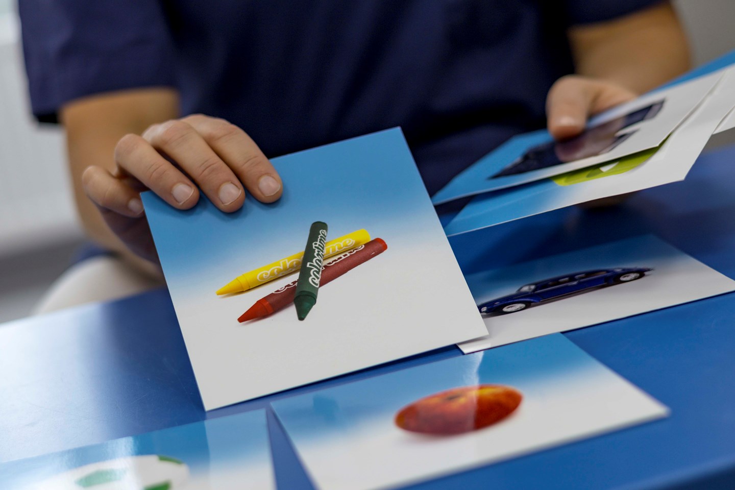 Barnsjuksköterska visar upp bildstöd