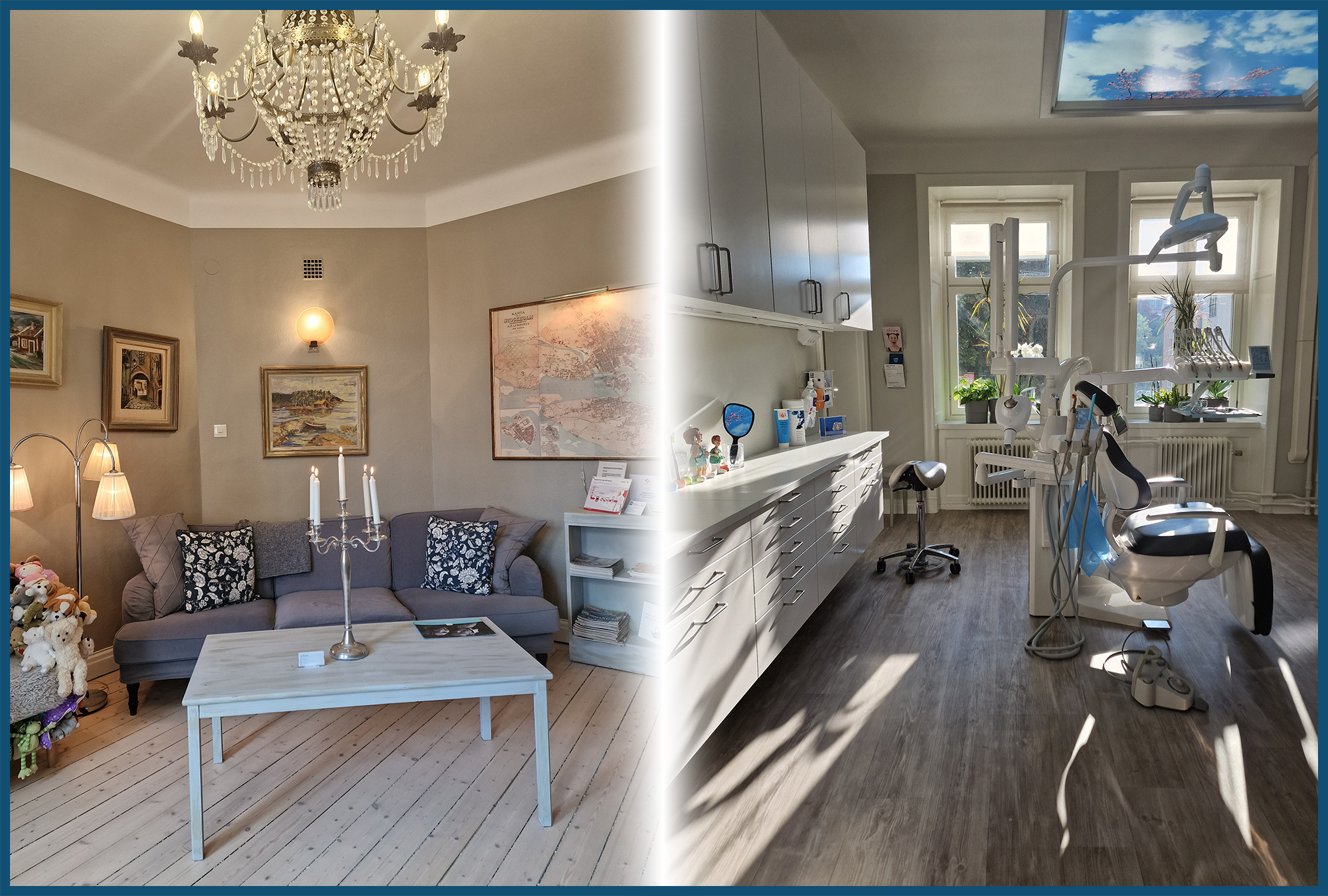 Vi är en liten tandvårdsmottagning med stor kapacitet, belägen i en familjär och rofylld miljö på Kungsholmen. I våra varsamt bevarade lokaler möts tidlös charm och modern tandvård.. en plats där historien sitter i väggarna och där patienter har känt sig trygga i generationer.