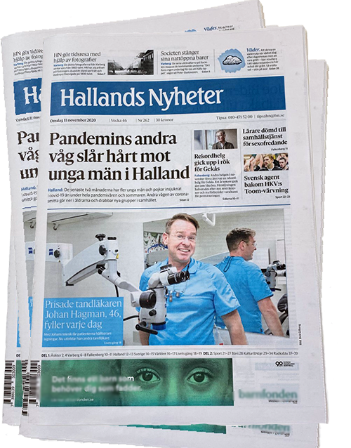 Johan Hagman intervjuades av Hallands Nyheter i samband med Praktikertjänsts pris. Intervjun publicerades i sektionen Livets Gång 2020-11-10. I Intervjun berättar Johan bland annat om sin omtalade noggrannhet som präglat hans syn på tandvård, för reportern Lena Berglund.