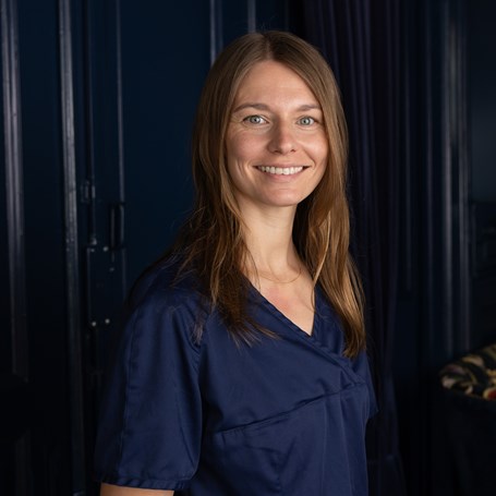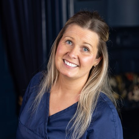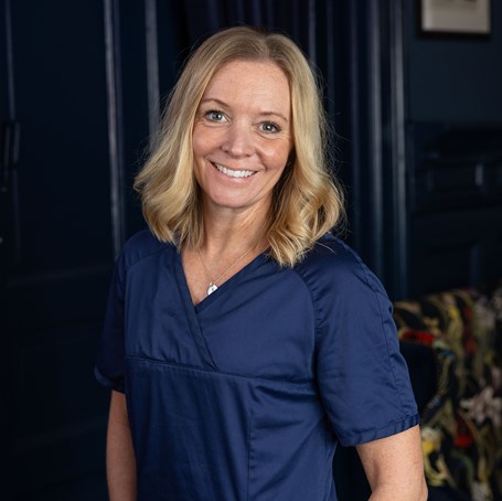 Helen Sjödin tog examen 2012 och kommer närmast från Folktandvården Västra Vall och dessförinnan Folktandvården i Ullared. Helen är också dotter till Jahn Sjödin som tillsammans med Stig-Åke Hedberg byggde kliniken 1983.