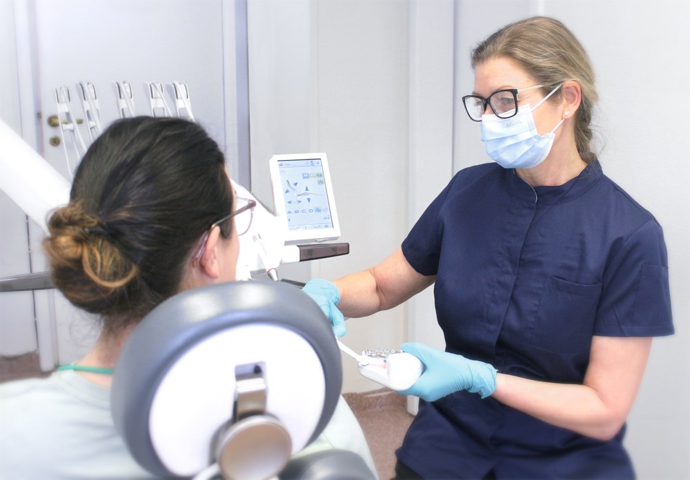 Behöver man extra stöd eller hjälp med sin munhygien kan man få detta av vår duktiga tandhygienist Marie som också gärna ger råd och tips.