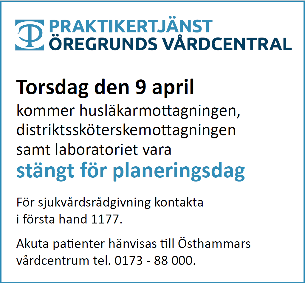 9 april på grund av planeringsdag