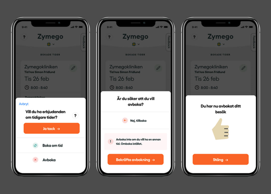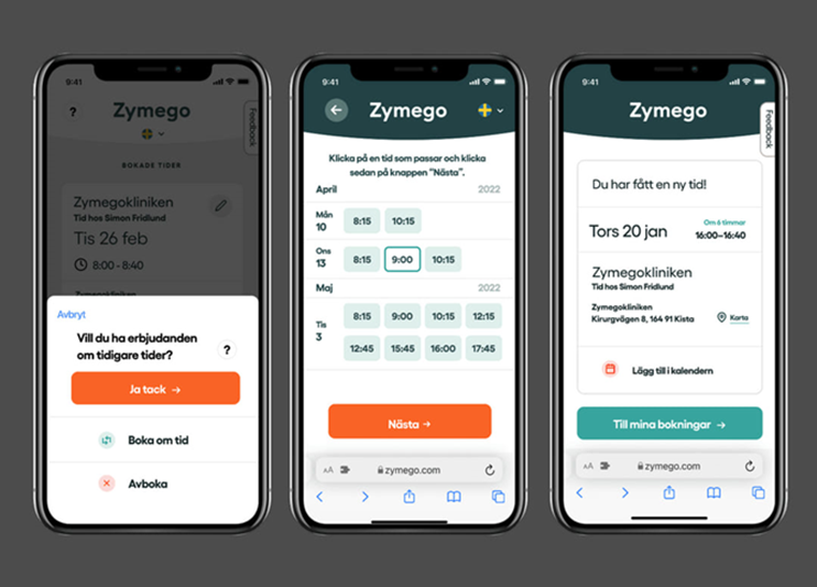 - Du kan boka en ny tid i Zymego*