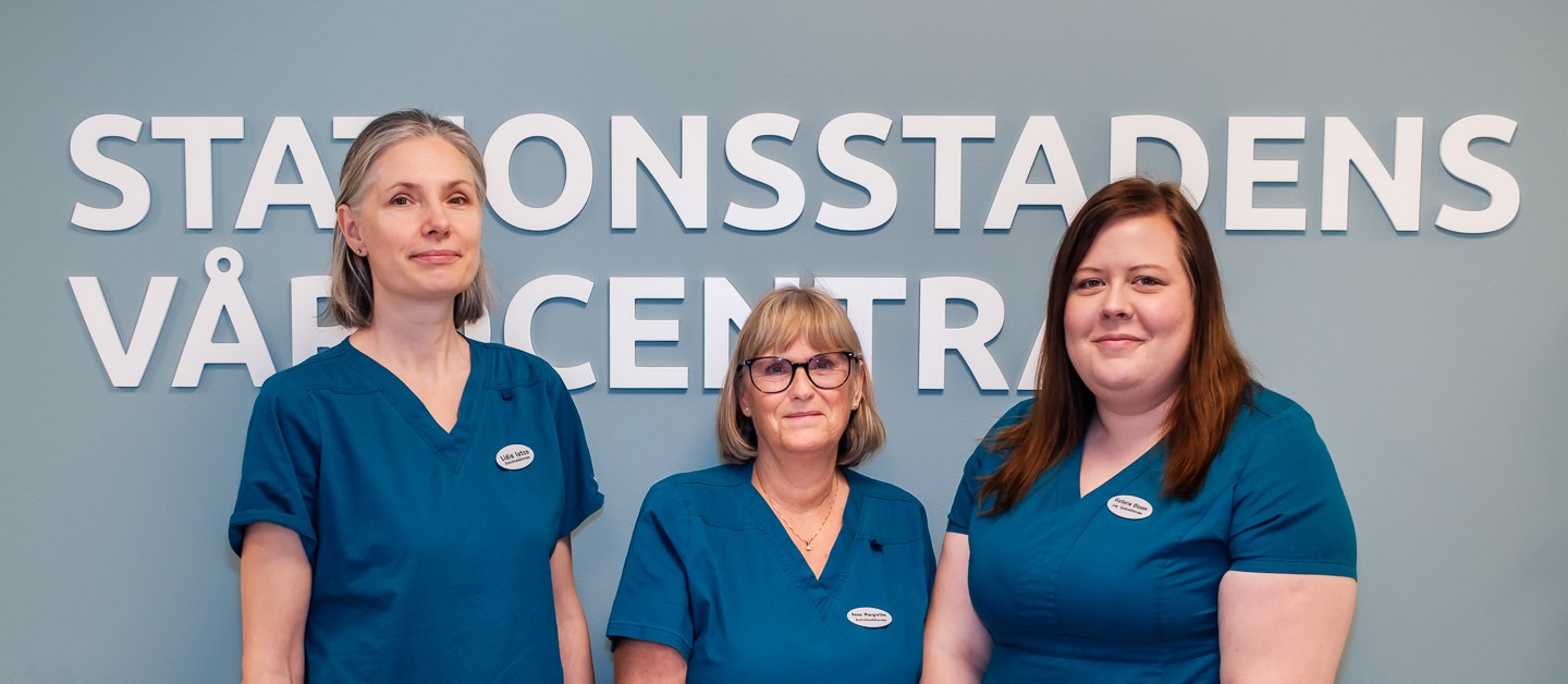 Välkommen till sköterskemottagningen på Stationsstadens Vårdcentral. Här träffar du diabetessjuksköterska/distriktssjuksköterska Lidia Iatco, distriktssköterska Anne-Margrethe Svensson samt sjuksköterska Victoria Olsson.