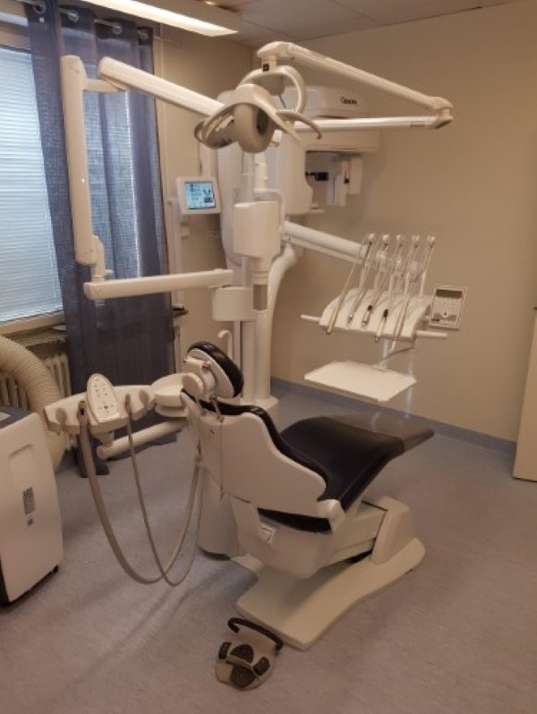 Nu är den nya stolen hos tandhygienisten på plats.